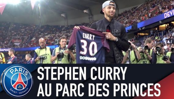 Après Kevin Durant il y a quelques années, c’était au tour de Stephen Curry de fouler la pelouse du Parc des Princes et de repartir avec un maillot du PSG floqué à son nom.