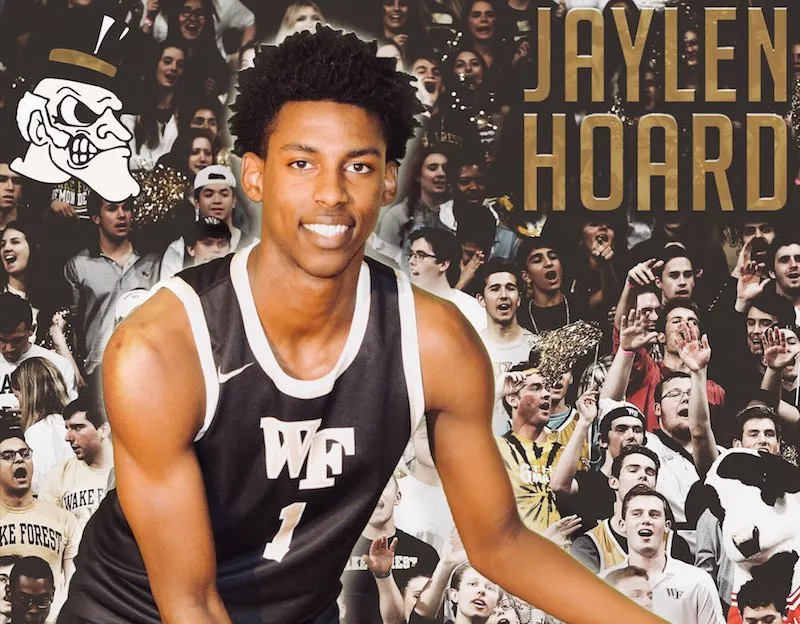 Chose promise, chose due, Jaylen Hoard (2m05, 18 ans) a dévoilé le nom de sa future université, et il a opté pour Wake Forest, l'ancienne fac' de Chris Paul, Tim Duncan ou encore Muggsy Bogues et Jeff Teague. Ce qui signifie qu'il restera en Caroline du Nord où il évolue depuis un an, et que la visite du campus, ce jeudi, a été décisive.