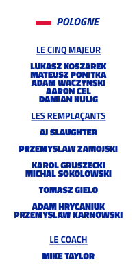 Grâce à son duo Mateusz Ponitka – Przemyslaw Karnowski, issus de la génération 1993 qui a décroché l’argent aux Mondiaux U17 en 2010, la Pologne peut nourrir quelques ambitions, avec A.J. Slaughter, Adam Waczynski et Damien Kulig pour les entourer.