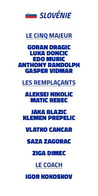 Avec Goran Dragic et Luka Doncic, la Slovénie dispose d’un duo de talent, qui peut créer pour les autres membres de l’équipe. Grâce à la naturalisation d’Anthony Randolph, l’équipe possède également un soutien intéressant pour Gasper Vidmar sous le cercle.