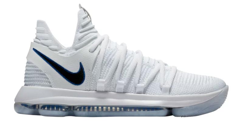 Dévoilée au moment des dernières Finals, la KD10 sera aussi la chaussure de rentrée de Kevin Durant. Et comme Nike est désormais l’équipementier officiel de la NBA, la marque va visiblement pouvoir se faire plaisir en utilisant le légendaire logo de la ligue.