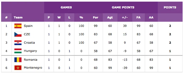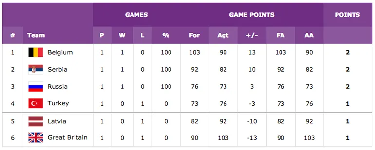 De son côté, la Croatie de Bojan Bogdanovic (23 points) et Dario Saric (15 points) a souffert face à une vaillante Hongrie, ne faisant la différence que dans le dernier quart-temps. Quant à la Turquie, malgré l'activité de Cedi Osman (28 points, 7 rebonds, 4 passes), elle a dû plier à domicile face à la Russie de Timofey Mozgov (20 points, 9 rebonds), avec un Alexey Shved (22 points) décisif grâce à un panier à 3-points qui a refroidi toute la salle d'Istanbul.