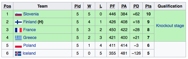 Et les huitièmes de finale connus sont : Allemagne – France, Slovénie – Ukraine, Lituanie – Grèce et Finlande – Italie.
