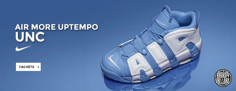 Commandez chez B4B la Nike Air More Uptempo dans un coloris University Blue hommage aux Tar Heels de North Carolina.