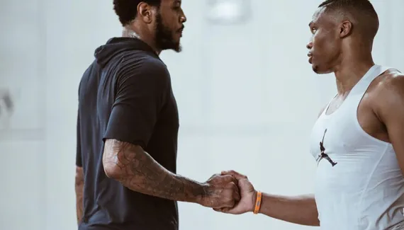 Après LeBron James et Kevin Durant, ou ses coéquipiers Frank Ntilikina et Tim Hardaway Jr., c'est Russell Westbrook qui est venu s'entraîner avec Melo. De passage dans le coin lui aussi, Brandon Jennings a dû se coltiner le MVP en titre en défense, tandis qu'on aperçoit aussi Enes Kanter.