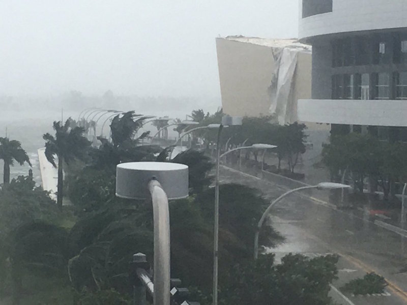 Update from Heat: exterior membrane of practice court blown off because of Irma. Structure of Arena remains sound and intact. @WPLGLocal10 pic.twitter.com/EgM2rKO0iB