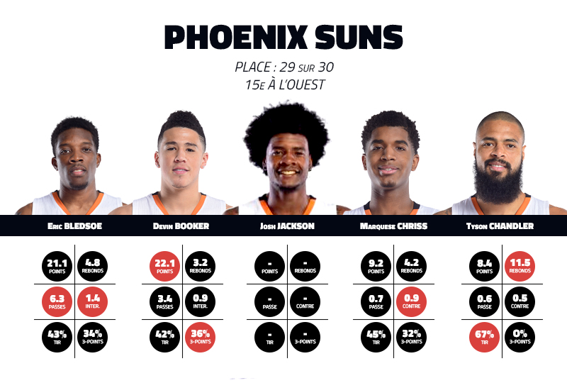 Ce serait bien aussi qu’Earl Watson ait potassé son système durant l’intersaison. Son équipe était la deuxième plus rapide l’an passé, pareil en terme de tirs tentés, mais dans les derniers du classement en pourcentage de réussite. Avec toujours autant d’attaquants dans l’effectif, il faudra travailler sur la sélection de tirs afin de gagner en efficacité à la table de marque mais aussi pour limiter les efforts en défense. S’ils avaient le 22e ratio offensif l’an passé, les Suns étaient 28e de l’autre côté. La défense est donc aussi à revoir pour l’entraîneur qui peut, tout de même, déjà compter sur un Josh Jackson prêt à tous les sacrifices. Mais tout ne peut pas reposer sur ses très jeunes épaules et une vraie identité défensive doit se construire autour de Tyson Chandler. Tout cela fait partie du processus de maturité qui doit mener les Dragan Bender, T.J Warren et Marquese Chriss à confirmer leur potentiel.
