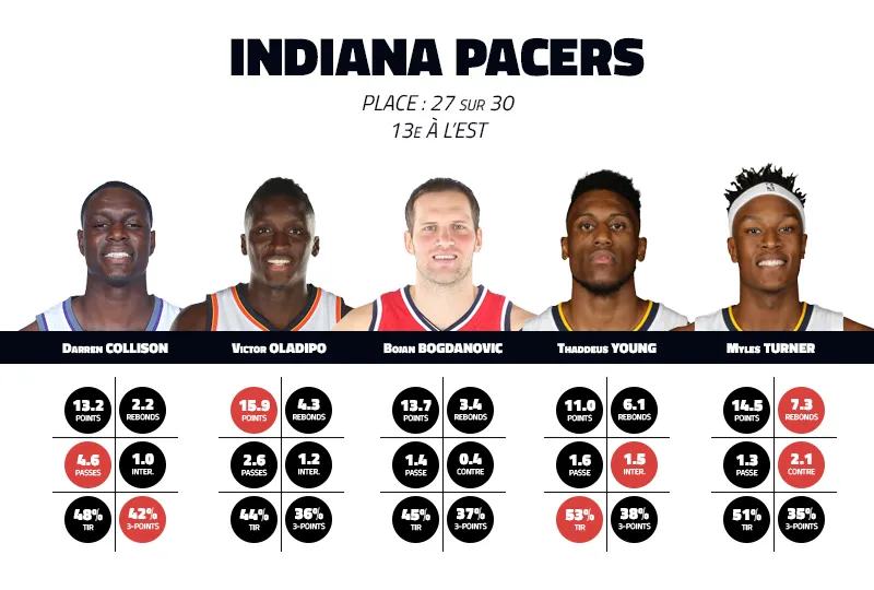 Jouer sans Paul George, les Pacers l'ont déjà expérimenté, et c'était il y a trois saisons. Ça ne s'était pas trop mal passé… puisqu'il avait remporté 38 matches ! Sur le papier, Nate McMillan a une équipe qui lui ressemble avec des joueurs revanchards et d'anciens remplaçants qui ne demandent qu'à jouer. S'il parvient à construire une identité défensive, les Pacers peuvent être une équipe gênante à défaut d'être géniale, et ils peuvent parfaitement se mêler dans la course à la 8e place. L'ensemble est sérieux, solide, et c'est déjà pas mal lorsqu'on veut tourner la page.