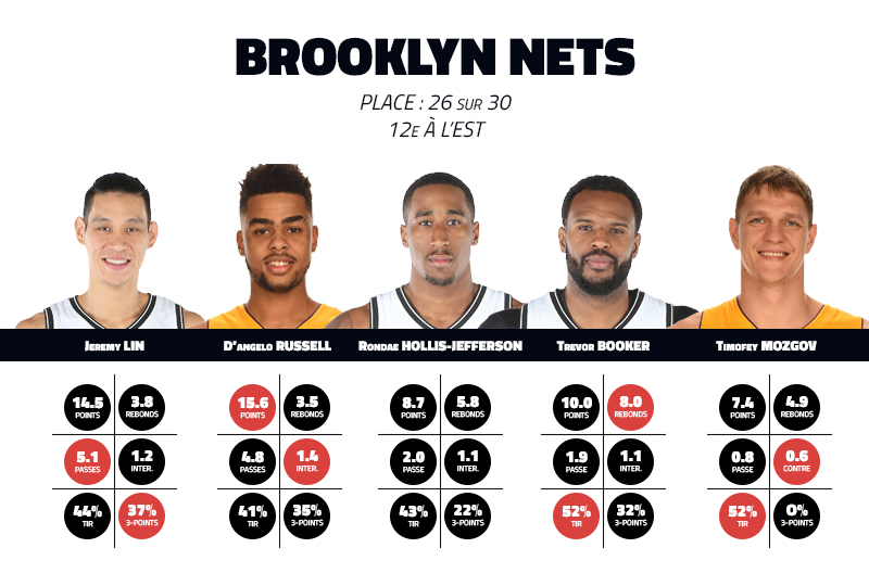 Malgré des lacunes en défense, l’entente Lin – Russell fonctionne très bien, et Kenny Atkinson confirme qu’il est l’un des meilleurs techniciens de la nouvelle génération. Son équipe lui ressemble, et comme la saison passée, elle ne lâche jamais rien. Avec les energizers du banc comme Allen Crabbe ou Sean Kilpatrick, les Nets scorent toujours beaucoup et tapent au maximum les équipes moyennes de la conférence pour émerger comme un candidat crédible à la 8e place. Mis en confiance par Kenny Atkinson, D’Angelo Russell est une véritable révélation et se pose même en All-Star potentiel. Allen Crabbe et lui peuvent viser le titre de meilleure progression de l’année.