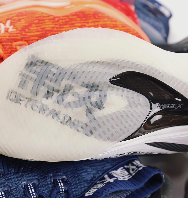 Un modèle qui est loin d’être inintéressant, avec une tige textile et un col façon chaussette. Les initiales du joueur sont présentes sur le talon sous forme de logo stylisé. Pas de précisions, par contre, sur le système d’amorti présent sous le pied.