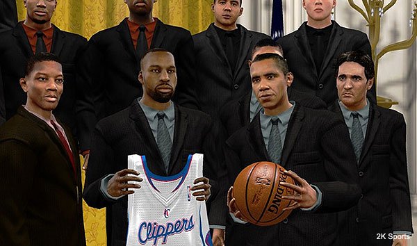 On notera d’ailleurs le clin d’oeil de 2K Sports sur cette image puisqu’il s’agit des Clippers, qu’on a pas vu en playoffs depuis des lustres, coachés par Vinny Del Negro, ancien entraîneur des Bulls, l’équipe préférée d’Obama.