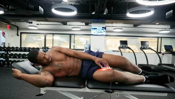 Ce dispositif un peu plus petit qu'un smartphone projette une lumière vive sur le muscle ou les tendons pour stimuler les processus naturels de la régénération au niveau cellulaire. Un concept baptisé “photobiomodulation.”
