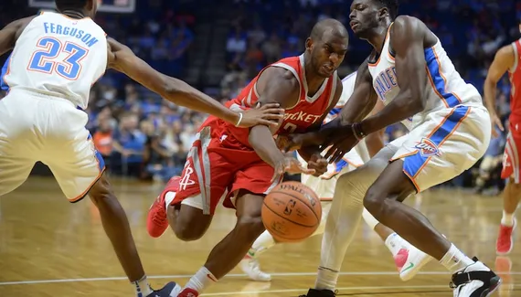 Le choc de la nuit de mardi entre deux des équipes les plus attendues de la saison n'a pas déçu. En l'absence de Russell Westbrook, le nouveau duo des Rockets Chris Paul – James Harden a brillé pour dominer celui du Thunder Paul George – Carmelo Anthony (104-97). Houston a vite repris ses habitudes avec une pluie de tirs longue distance, 24 paniers à 3-points sur 55 tentés !