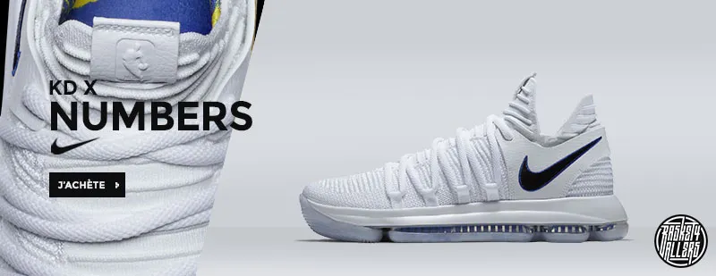 Commandez chez B4B la nouvelle Nike KD X Numbers qui pour la première fois dispose des logos officiels de la NBA et des Warriors.