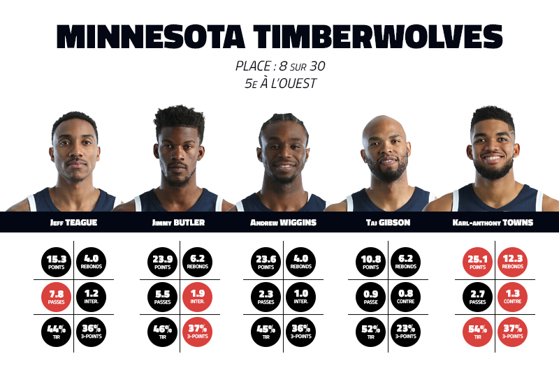 Karl-Anthony Towns, Andrew Wiggins, Jimmy Butler, Jeff Teague, Taj Gibson, Gorgui Dieng, Jamal Crawford, Shabazz Muhammad, Nemanja Bjelica… L’effectif des Wolves regorge désormais de talent et l’équipe n’aura aucune excuse cette saison. Pas question de rater les playoffs, même dans une conférence Ouest de plus en plus compétitive.