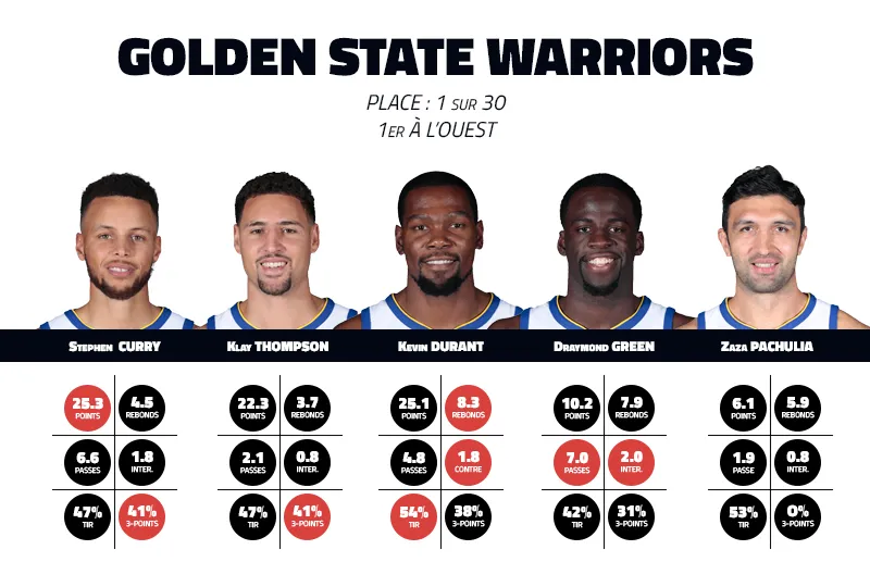 Avec un bilan de 67 victoires pour 15 défaites, difficile pour autant d'affirmer que les Warriors ont levé le pied la saison passée. On dira que l'acclimatation de Kevin Durant, à son nouvel environnement, ses nouveaux coéquipiers et un style de jeu inédit, était le principal enjeu de cette saison régulière. Et que celle-ci s'est, dans l'ensemble, très bien passée. Chahuté pour son choix de renforcer une équipe ultra-compétitive, KD est retombé comme un « chat » sur ses pattes, et a su enfiler son nouveau costume en prenant moins de responsabilités sur le parquet, sans pour autant dénaturer son jeu. Quant aux playoffs, même flashback, il faut remonter aux Lakers du Zen Master (2001) pour voir pareille domination. Trois sweeps de suite dans une conférence Ouest toujours aussi relevée, et une finale NBA maîtrisée de la tête et des épaules.