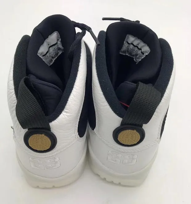 Du côté de chez Jordan, la numéro 9 est déjà dans les cartons, avec une teinte qui mêle le noir sur le haut de la tige, et le blanc sur la partie en cuir. Le tout est posé sur une semelle translucide. À l'intérieur, on retrouve une carte de Los Angeles.