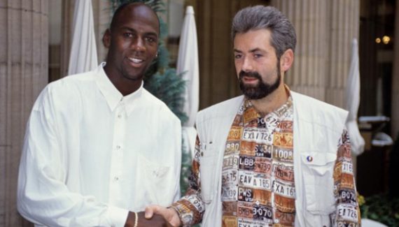 “J’étais très mal habillé ce jour-là, avec un t-shirt col V des Bulls pour faire le supporter de base. J’avais un décolleté horrible qui faisait paraître mes poils. Mon seul regret c’est qu’on ne m’ait pas mieux conseillé. En plus MJ était là avec un superbe costard. La grande classe.”