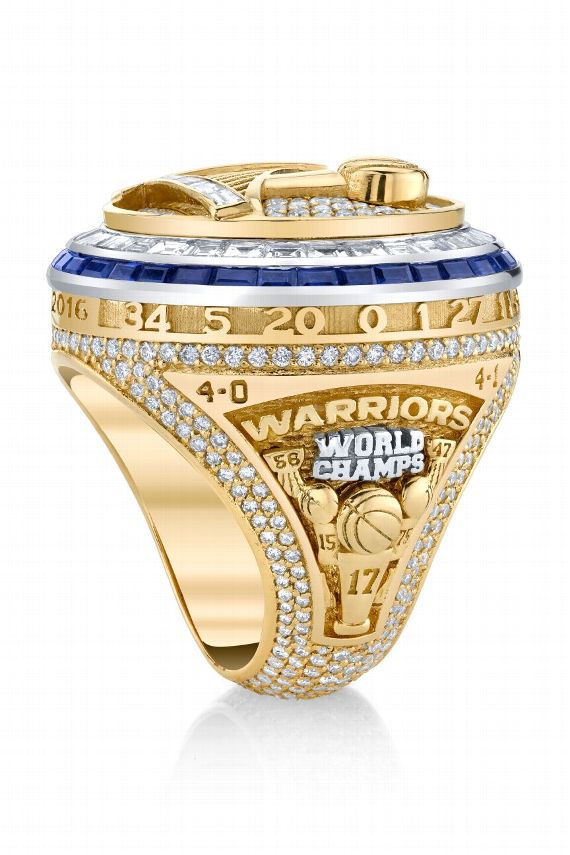 Ce bijou 11 carats a la particularité d’avoir comme référence… le nombre de victoires remportées par Golden State l’an passé ! Elle compte 36 saphirs bleus, soit autant que de victoires à domicile des Warriors l’an passé. Et les 31 diamants blancs évoquent les succès à l’extérieur.