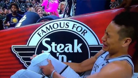 On était dans le 4e quart-temps du match face aux Pacers, et sur un lay up anodin, et sans contact avec un défenseur, Jeremy Lin se tord le genou sur sa réception. Il s’arrête près du socle du panier, touche son genou. Il doit sentir qu’un truc cloche, et il s’écroule en larmes…