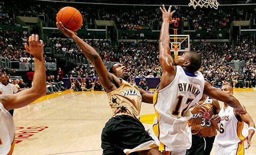 En face, il y a les Lakers. Le match d’avant, Kobe Bryant a planté 53 points. Il est chaud avant d’accueillir Arenas.
