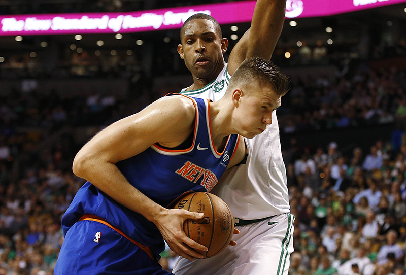 Là encore, Al Horford va réussir à rattraper la situation. Restant d’abord entre les deux, il ne vient sur le Letton que lorsque ce dernier reçoit le ballon. Pour autant, il ne se jette pas et n’autorise pas la prise d’intervalle sur le dribble. Kristaps Porzingis doit retrouver son meneur et Jaylen Brown a de son côté pu revenir sur Tim Hardaway Jr.