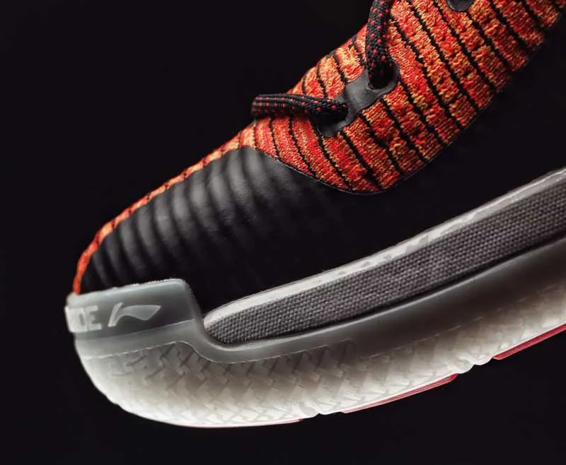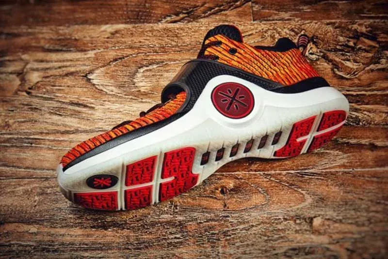 La tige orange en tissu est accompagnée par de nombreuses touches de noir, et une semelle blanche. Li-Ning a complété le thème par l’inscription «Pumpkin» sous la sangle. Au final, ce coloris se marie plutôt bien avec les couleurs des Cavaliers.