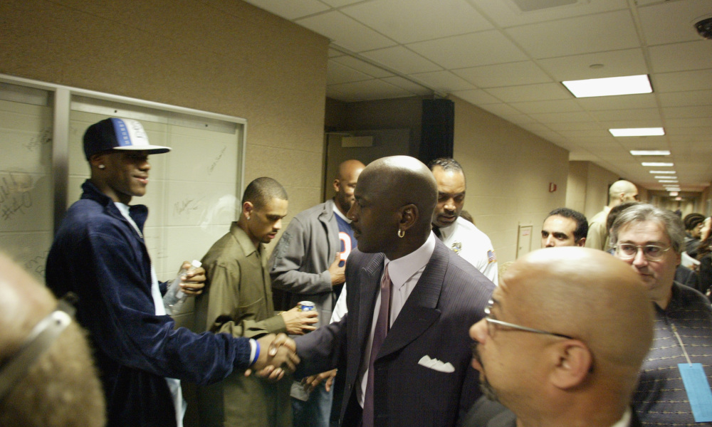 Surtout que LeBron James n'a jamais eu la chance, lui, de jouer face à son idole. Michael Jordan a ainsi quitté la ligue en 2003, quelques semaines avant l'arrivée de LeBron. Néanmoins, il existe une photo célèbre des deux hommes. Dans le cadre d'un Cavaliers – Wizards, Michael Jordan est à Cleveland, LeBron James dans le public, et après la partie, dans un couloir, ils se croisent. Ils échangent une poignée de main, immortalisée par un photographe.