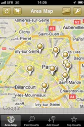 L'application iPhone de Courts of the World a deux objectifs : le premier, c'est de pouvoir consulter les terrains de sports à proximité via son téléphone. Le second, c'est de pouvoir facilement enrichir la base des playgrounds.