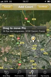 La force de l'application réside dans sa capacité à dynamiser l'enrichissement de la base. Il est en effet extrêmement simple de créer un nouvel emplacement. La barre de menu inférieure propose un lien “Add Court” (ajouter un terrain).