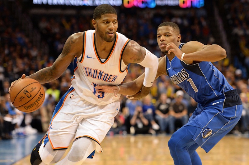 Privé de Carmelo Anthony (dos) pour la première fois de la saison, le Thunder a dominé Dallas (112-99) dimanche, porté par son duo Paul George – Russell Westbrook. L’ancien scoreur d’Indiana a même fait sa meilleure imitation de son MVP de coéquipier en terminant meilleur marqueur, rebondeur et passeur d’OKC. Sans vraiment briller, Oklahoma City enchaîne une deuxième victoire et se rapproche d’un bilan équilibré.