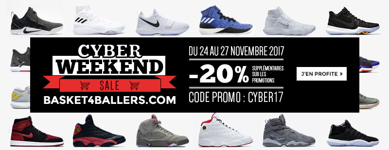 Kobe AD, Kyrie 3, Lebron 14, Crazy Explosive 2017, Harden Vol. 1, Air Jordan 1, 13 et bien d’autres à des tarifs exceptionnels durant le Cyber Weekend Basket4Ballers. Foncez !