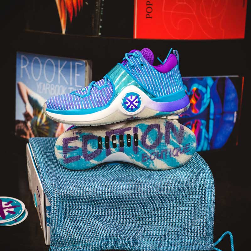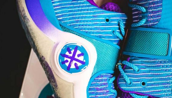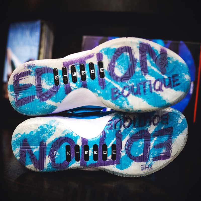Sur la tige en tissu, on retrouve une teinte qui rappelle les maillots des Charlotte Hornets des années 90. Même le logo Li-Ning a droit à une petite modification, avec des contours qui semblent avoir pris un bon coup de pinceau.