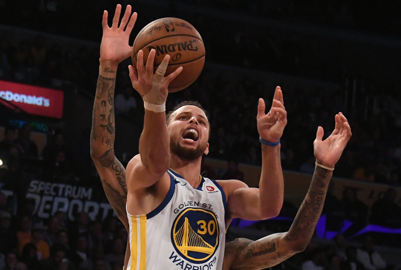 À côté de la plaque pendant les trois quarts du match, Stephen Curry (28 points 7 passes, 5 rebonds), de retour mais avec la main droite bandée, a attendu la prolongation pour se réveiller et sauver les Warriors d’une défaite qui leur tendait les bras (127-123) au Staples Center. Si Lonzo Ball (15 points, 10 passes) a eu ses moments et que Draymond Green (15 points, 11 rebonds, 9 passes, 4 interceptions) a frôlé le triple double, c’est le duel entre Kevin Durant (29 points, 7 rebonds, 5 passes) et Brandon Ingram (32 points, nouveau record en carrière) qui a tenu tout le monde en haleine avant le show du numéro 30.