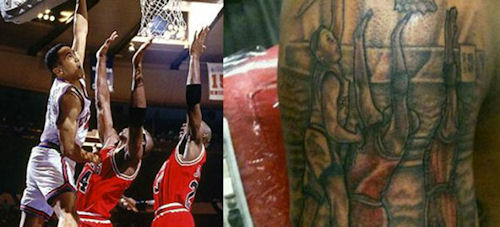 “Je me suis fait faire ce tatouage il y a deux ans, a expliqué ce musicien/producteur sur Yahoo! Sports. Pour moi, ce dunk est un moment qui a marqué l’histoire de la ville. C’est une action où je me suis senti fier d’être Newyorkais.”
