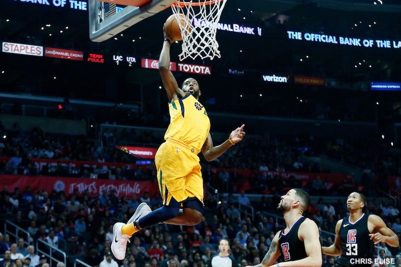 Les Clippers reviennent des vestiaires avec envie, et marquent leurs sept premiers tirs du troisième quart-temps en alternant bien entre shoot extérieur et paniers faciles. Lou Williams (20 points, 5 passes) joue les distributeurs pour un Montrezl Harrell incisif pour sa première titularisation à LA. Mais Utah ne se laisse pas décramponner et profite des cadeaux laissés en route par leur adversaire pour revenir à nouveau. Excellent jusqu’alors au rebond, DeAndre Jordan se laisse sortir du match par des coups de sifflets hasardeux. Favors n’en demandait pas tant pour dominer sous le cercle. Le Jazz passe un 14-2 pour reprendre les devants et sept points d’avance avant le début du quatrième quart-temps. Avec un bon passage de Sam Dekker, les locaux reviennent un instant mais le momentum est clairement pour les hommes de Quin Snyder. Burks, auteur de son meilleur match de la saison (28 pts à 11/17, 7 rbds, 5 pds, 3 ints en 29 minutes) et Sefolosha sont impeccables en sortie de banc, l’écart grimpe au-dessus des dix points.
