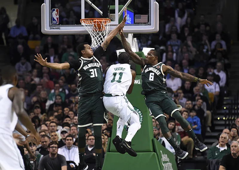 Duel entre Kyrie et Giannis dès le début de match, le Grec faisant une nouvelle fois – comme lors des deux précédentes confrontations entre les deux équipes – des misères au pauvre Aron Baynes sous le cercle (9-8). Les C's enchaînent bien mais Jaylen Brown, pas très en forme en ce moment, commet deux fautes, une offensive et une sur un panier de Khris Middleton, qui cassent cette dynamique. La paire Baynes-Tatum finit par faire un premier écart conséquent, grâce à l'adresse du meilleur rookie de la ligue à 3-points, qui en plante quatre dans ce premier quart (34-26).