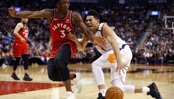 Après le traditionnel round d’observation, c’est OG Anunoby qui lance la rencontre. Une interception pour envoyer Serge Ibaka au dunk (10-7), puis deux 3-points d’affilée et voilà Toronto qui prend les commandes du match (21-15). Tout comme l’adresse de Booker, les défenses sont restées aux vestiaires, et c’est Toronto qui en profite pour prendre le large. Kyle Lowry récupère un ballon qui traîne au rebond offensif, et il shoote dans la foulée à 3-points. C.J. Miles l’imite, et les Raptors s’envolent (36-19).
