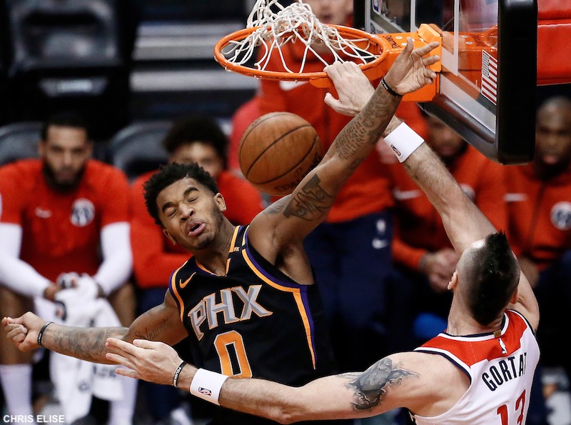 Les Suns prennent leur match par le bon bout, avec beaucoup d’agressivité. Titulaire, Marquese Chriss lance le bal à 3-points et TJ Warren poursuit pour Phoenix qui mène 16-6. Josh Jackson vient placer une claquette dunk monstrueuse mais les Wizards ne sont pas en reste avec Marcin Gortat et Otto Porter qui s’accrochent aussi au cercle ! Jackson met à son tour Chriss sur orbite au alley oop dans ce 1er quart qui tourne au concours de dunks. Beal et Morris rapprochent néanmoins D.C. en fin de période (28-26).