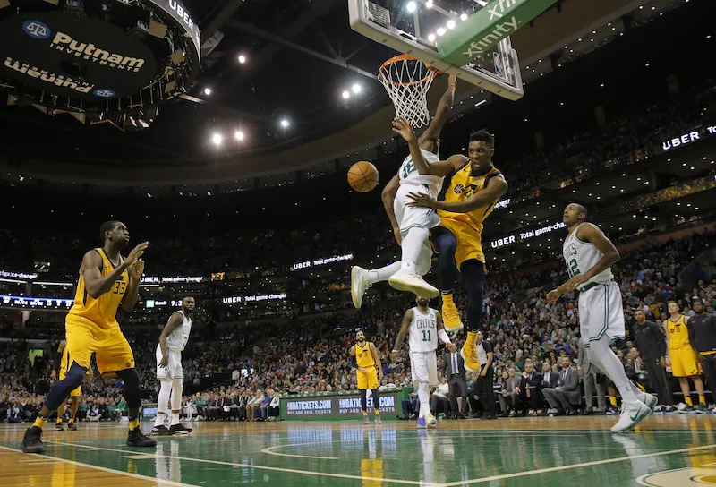 C'est la tuile direct pour le Jazz qui se voit privé de son pivot titulaire, Rudy Gobert. Le pivot tricolore est encore malheureux avec Derrick Favors qui lui tombe sur la jambe gauche. Récemment touché, le pivot rejoint les vestiaires et ne reviendra plus. Forcément, les Celtics en profitent et prennent l'avantage sur cette interception conclue d'un dunk de Jaylen Brown. Al Horford est reçu 5/5 aux tirs et les Celtics prennent même 8 points d'avance. L'écart est finalement de cinq unités après le 1er quart (26-21).