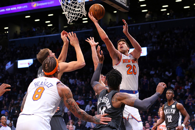 Néanmoins, l’ancien joueur des Bulls et du Thunder commence à trouver des pistes pour gagner en efficacité. Il affiche d’ailleurs son meilleur pourcentage au tir en carrière, avec 49.5% d’adresse depuis le début de saison. Et il n’est pas mal non plus à l’extérieur puisqu’il est à 41.5% de réussite sur les tirs à plus de 7m25 depuis son transfert à New York.