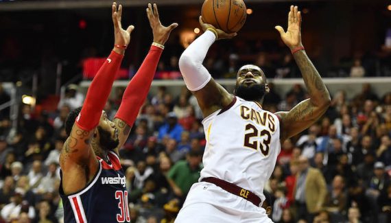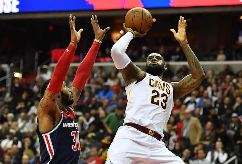 LeBron James a profité de son passage à D.C. pour envoyer des messages. D’abord avec ses deux chaussures dépareillées, blanche et noire, frappées du mot “Equality” : un message à l’attention de la Maison Blanche. Et puis avec son troisième triple double de suite (20 pts, 15 pds, 12 rbds), presque neuf ans après son seul unique “triplé”, pour prouver qu’il était plus vert que jamais à l’approche de ses 33 ans et porter les siens vers la victoire (106-99).