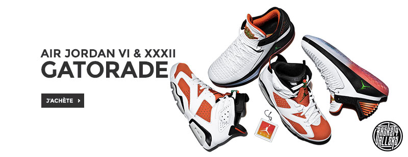 Commandez chez B4B les Air Jordan VI & XXXII Gatorade dans un nouveau coloris inspiré de la publicité “Like Mike” qui a marqué toute une génération.