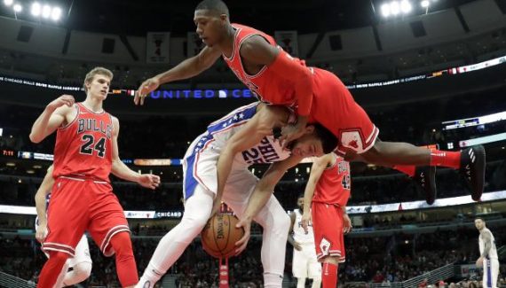 Trois jours après son match de folie face à OKC, Philadelphie doit composer sans Joel Embiid pour défier une équipe de Chicago irrésistible depuis cinq matchs. Adroits en ce début de rencontre, les 76ers profitent de la mauvaise entame des Bulls pour prendre confiance. Ben Simmons (19 points, 11 rebonds et 9 passes décisives) s’occupe de gérer le tempo et de servir Dario Saric ou Robert Covington (18-10). Mais la vitesse de Kris Dunn et les entrées de Nikola Mirotic et Bobby Portis font un bien fou aux locaux qui retrouvent du liant en attaque.