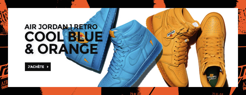 Commandez chez B4B les Air Jordan 1 Retro Gatorade Orange et Cool Blue inspirées de la publicité “Like Mike” qui a marqué toute une génération.