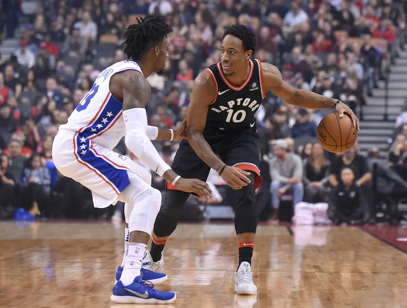 DeMar DeRozan euphorique, Joel Embiid colérique