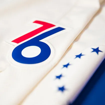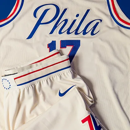 Ainsi, le club explique dans un communiqué que la police de caractère fait référence à la signature de la déclaration d'indépendance des Etats-Unis de 1776, tandis que le design du “76” sur le short rend lui hommage au bicentenaire célébré en 1976 à Philly. Si le maillot ne diffère pas énormément de la tunique principale des Sixers, il est aussi efficace.