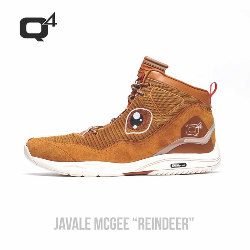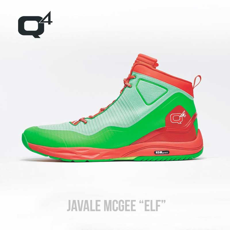 Javale McGee a rejoint la marque Q4 Sports, et il a eu droit à deux paires de chaussures pour Noël. Sur la base du modèle 495 Hi, deux coloris totalement différents ont été imaginés.