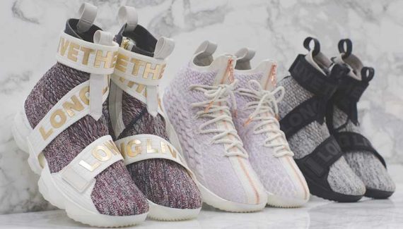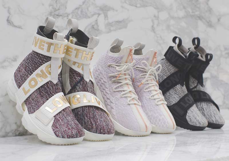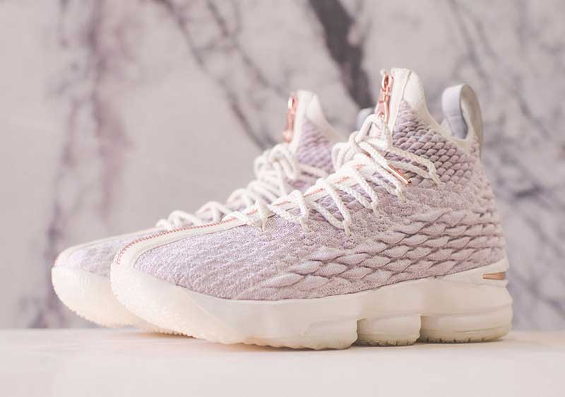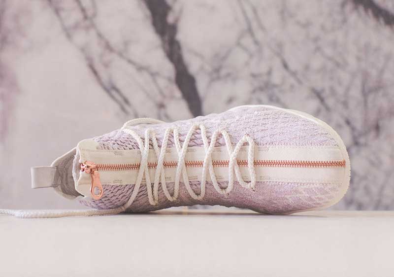 Comme prévu, cette collection basée sur la LeBron 15 est composée de deux éditions lifestyle et d’un modèle performance. Porté par le King pour les matchs de Noël, ce dernier se distingue par l’ajout d’une fermeture éclair sur la tige. Nom de code : “Rose Gold.”