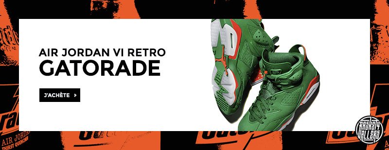 Commandez chez B4B la Air Jordan 6 Retro NRG Gatorade inspirée de la publicité “Like Mike” qui a marqué toute une génération.